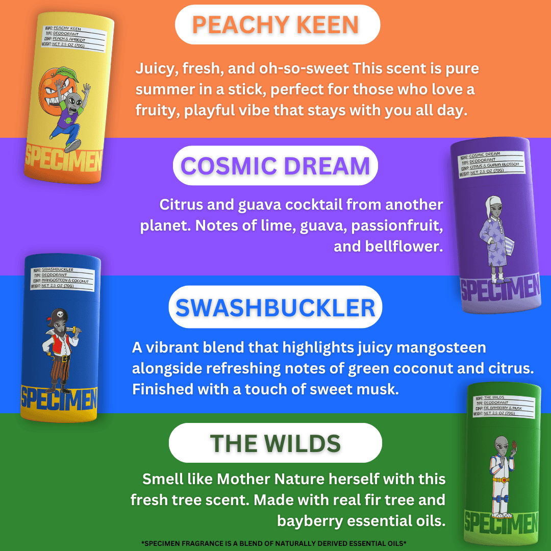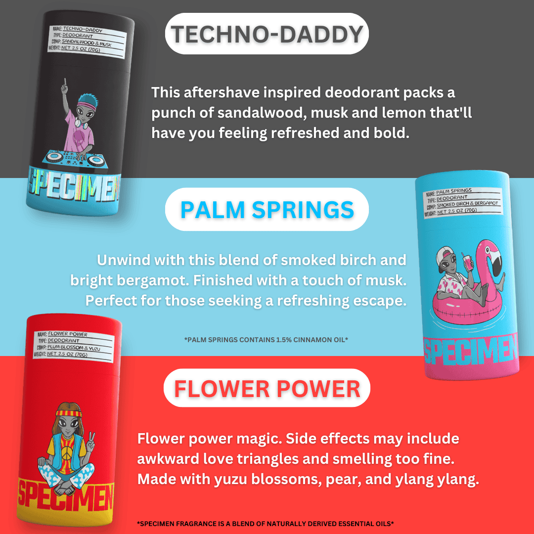 Specimen Deodorant is formulated at the highest concentration. Lasting wear throughout the day without being overwhelming. 1-3 swipes per pit per day is all you need. One stick can last up to 2-4 months.